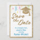 Esta placa Save the Date (Salvar a data) festiva apresenta um cabeçalho dourado superado, um boné de formatura de coordenação e gráficos de confetti coloridos. Use os campos de modelo para adicionar seus próprios detalhes e clique para editar mais se quiser alterar as cores - fonte, layout ou outros elementos de design. O texto do cabeçalho, o boné e os gráficos confetti podem ser reposicionados e redimensionados, se necessário.