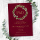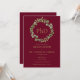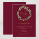 Com uma elegante guirlanda de folhagens botânicas e tipografia dourada clássica em fundo burgundy, este convite de formatura de PhD elegante pode ser personalizado com o nome e informações do formando. Concebido por Thisisnotme©