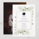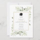Com delicadas folhas de greenery em aquarela, este convite de festa de graduação elegante pode ser personalizado com a foto do formando no verso. Criado por Thisisnotme©