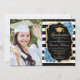 Festa de formatura com sua foto. Apresenta faixas brancas pretas, fonte de script, rosas de turquesa, tassel e confetti. Elegante design azul-aqua preto branco com ouro brilhante falso. Perfeito para uma celebração elegante.