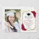 Festa de formatura com sua foto. Design elegante em branco, ouro e vermelho. Apresenta fontes de script, rosas vermelhas, tassel, dourado brilhante falso e confetti. Perfeito para uma celebração de na moda.