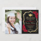 Festa de formatura com sua foto. Apresenta fontes de script, rosa vermelha, tassel e confetti. Design vermelho preto elegante com ouro brilhante. Perfeito para uma celebração elegante.