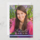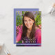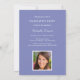 Convite de festa de formatura elegante com uma foto na frente com tipografia moderna de nome e sobrenome clássico. Personalize o nome, escola e ano de formatura. O verso inclui um design periwinkle coordenado com detalhes da festa, RSVP e linhas de endereço para um visual limpo e polido.