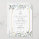 Com destaque para belas folhagens de greenery em aquarela e uma borda geométrica dourada, este convite de festa de formatura sofisticado pode ser personalizado com a foto do formando no verso. Criado por Thisisnotme©