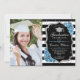 Festa de formatura com sua foto. Apresenta faixas brancas pretas, fonte de script, rosas de turquesa, tassel e confetti. Elegante design azul-aqua preto branco com falso prata brilhante. Perfeito para uma celebração elegante.