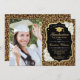 Festa de formatura com sua foto. Apresenta impressão de animais leopardo, fonte de script, rosas brancas, tassel e confetti. Design branco, preto elegante com ouro brilhante. Perfeito para uma celebração elegante.