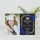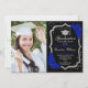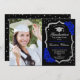 Festa de formatura com sua foto. Recursos, fonte de script, rosas azuis reais, tassel e confetti. Elegante design azul esbranquiçado de safira branca com falso prata brilhante. Perfeito para uma celebração elegante.