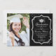 Festa de formatura com sua foto. Design branco, preto elegante com prata brilhante. Apresenta fontes de script, tassel e confetti. Perfeito para uma celebração de na moda. Personalize com seus próprios detalhes.