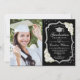 Festa de formatura com sua foto. Apresenta fontes de script, rosas brancas, tassel e confetti. Design branco, preto elegante com prata brilhante. Perfeito para uma celebração elegante.