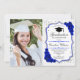 Festa de formatura com sua foto. Apresenta fontes de script, rosas azuis reais, tassel e confetti. Design branco elegante com prata brilhante falso. Perfeito para uma comemoração de na moda.