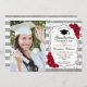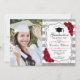 Festa de formatura com sua foto. Possui listras brancas prateadas, fonte de script, rosas vermelhas, tassel e confetti. Design clássico com falso brilho de prata. Perfeito para uma celebração elegante.