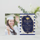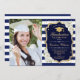 Festa de formatura com sua foto. Possui faixas brancas marinho, fonte de script, rosas brancas, tassel e confetti. Preto elegante, design marinho azul com ouro brilhante falso. Perfeito para uma celebração elegante.