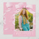 Este convite de festa de formatura com laço rosa apresenta um design estético delicado e feminino com uma grande moldura de fita e tipografia branca elegante. Perfeito para uma formanda elegante, ele destaca sua foto com um visual de formatura com laço rosa na moda que se sente feminino, moderno e memorável. Criado por Simply Farmhouse Press.