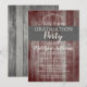 Convidamos para uma festa de formatura com design rústico em madeira de celeiro e madeira tipo tabuinha cinza e aspecto de aniagem com roda de carroça, criado pela Holiday Hearts Designs (todos os direitos reservados).