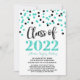 cartão com fotos personalizado de convite para festa de formatura de 2022 em glamouroso turquesa azul-lacrimejo e preto-confetti e texto moderno com letra de mão.