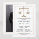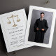 Este convite para a formatura da faculdade de direito moderno é perfeito para anunciar sua formatura de uma forma elegante. Pode ser usado tanto como anúncio de graduação quanto como convite. O cartão de graduação deste advogado apresenta uma imagem que você pode adicionar facilmente. No outro lado da placa de formando, você pode incluir informações sobre sua cerimônia de graduação, informações sobre festas de formatura ou outros detalhes essenciais.