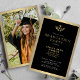 Tipografia de ouro elegante, escalas de justiça e convite de festas de formando de direito-quadro. Fácil de personalizar com detalhes de celebração de formandos e fotos de ambos os lados.