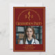 Este convite de festa de formatura de uma faculdade de medicina osteopática, costume em marrom e ouro, para um médico do O ou um médico osteopata apresenta um símbolo médico osteopático caduceus e sua foto de faculdade para a classe de 2025. Personalize com o seu ano de graduação um convite de fotografia de formando universitário personalizado de excelente.
