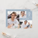 Este convite à festa de formatura da escola de direito moderna pode ser personalizado com suas 3 fotos de formando especial e detalhes de celebração em um fundo azul empoeirado. Projetado por Thisnotme©