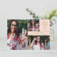 Este convite à festa de formatura da escola de direito moderna pode ser personalizado com suas 3 fotos de formando especial e detalhes de celebração em tipografia dourada em um fundo rosa-claro. Projetado por Thisnotme©