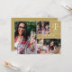Este convite à festa de formatura da escola de direito moderna pode ser personalizado com suas 3 fotos de formando especial e detalhes de celebração em um fundo de ouro. Projetado por Thisnotme©