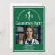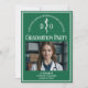 Este convite de festa de formatura escolar de medicina osteopática e costume verde para um médico do ou osteopata apresenta um símbolo médico osteopático caduceus e sua foto da faculdade para a classe de 2025. Personalize com o seu ano de graduação em tipografia branca para um convite de fotografia de formando universitário personalizado de excelente.