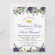 Elegante Watercolor roxo Flores de Verão e design de folhagem com confete de ouro e fotografia personalizada no verso