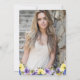 Elegante Watercolor roxo e azul Flores e design de folhagem de Verão com confete de ouro e foto personalizada no verso
