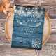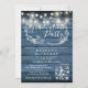Um convite à festa de formatura rústico com luzes bonito de cordas, frascos-pedras e uma delicada terra floral rústica desenhada à mão de folhagem botânica, com tipografia de na moda, sobre um fundo de madeira rústica azul. Projetado por Thisnotme©