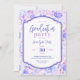 Um convite de festa de formatura com tema giro e giro em tons de roxo, azul e mauve. Este design de tendências tem um impressão de fundo floral de abstrato de aquarela com tipografia mista moderna. Adicione os detalhes personalizados da sua parte e selecione em convites impressos em papel ou um download digital para uma opção rápida e econômica para enviar mensagens de texto ou e-mail aos seus convidados. Este convite de festas funciona como excelente para formandos do ensino médio, segundos graus ou faculdades. Use as ferramentas de design para alterar as fontes e as cores para criar seu próprio design de convite exclusivo e gentil.
