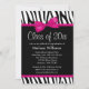Um padrão de zebra preto-e-branco moderno com um gráfico de arco de fita rosa-quente é apresentado neste divertido convite para apresentação de formatura. Perfeito para uma formatura no mais velho secundário, formandos ou convite para festas de formatura.Os Designs são ilustrações/gráficos impressos - NÃO É REAL.