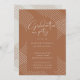 Convite de festa de formatura geométrica moderna. O design apresenta um padrão de linha de arco com um quadro de arco. Acrescentar o ano juntamente com o nome do formando, a escola e os detalhes do evento. O verso apresenta um padrão moderno de arco geométrico que complementa maravilhosamente o design da placa de formando frontal. Você pode mudar a cor de fundo, assim como as formas de arco para qualquer cor para complementar sua foto. Projetado por Moodthology Papery.