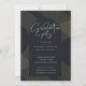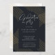 Convite de festa de formatura geométrica moderna. O design apresenta um padrão de linha de arco com um quadro de arco. Acrescentar o ano juntamente com o nome do formando, a escola e os detalhes do evento. O verso apresenta um padrão moderno de arco geométrico que complementa maravilhosamente o design da placa de formando frontal. Você pode mudar a cor de fundo, assim como as formas de arco para qualquer cor para complementar sua foto. Projetado por Moodthology Papery.