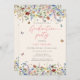Este é um delicado e convite de festas de graduação em boemia. O design apresenta um campo colorido de aquarelas de flores silvestres em tons bonito de azul, terracota, rosa, roxo e amarelo. As borboletas e as abelhas adicionam o toque elegante botânico final. Você pode personalizar todo o texto de acordo com as suas necessidades. Entre em contato com o designer para verificar se há variações neste design ou se há outros produtos correspondentes.