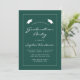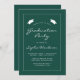 Este convite clássico e moderno para festas de formatura apresenta texto branco em uma borda retangular branca fina sobre um fundo verde escuro. A palavra "Graduação" e o nome do formando aparecem em letra casual moderna, sob um par de bonés de conselho de argamassa branca. Personalize o convite com detalhes da parte. A parte traseira da carta está verde estável.