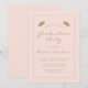 Este convite clássico e moderno para festas de formatura apresenta o texto dourado numa borda retangular em ouro fina sobre um fundo cor-de-rosa pincelado. A palavra "Graduação" e o nome do formando aparecem em letra casual moderna, sob um par de bonés de conselho de argamassa de ouro. Personalize o convite com detalhes da parte. A parte traseira da placa está com um pincel sólido.