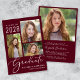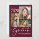 Elegante convite à festa de formatura vermelha de burgundy, com 3 fotos de colagem, "Formando" em um roteiro branco de na moda, e o nome do formando, ano de aula e escola ou universidade em simples letras brancas modernas. No verso, adicione uma foto adicional e os detalhes de sua festa de formatura.