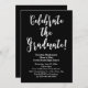 Vamos Celebra o Formando! Fonte de script de pincel de estilo manuscrito, brilhante e ousado, com "Celebrar o Formando" em um estilo de diversão artística. Adicione sua foto para um anúncio de graduação personalizada criativo, preto e branco.