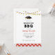 Convite de churrasco de formatura divertido e rústico com ilustração de aquarela de boina de formatura e luzes de corda com xadrez gingham vermelho e branco na parte inferior.