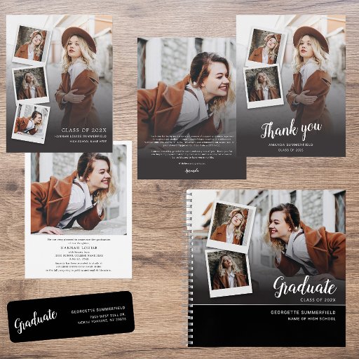 Classe do Convite para Graduação de Script Multifoto 2025. Adicione suas fotos à frente e uma no verso a este convite para festa de formatura de fotos minimalista moderno