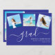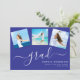 Convide os seus amigos e família para a sua festa de formatura com este Cartão de Convite para Festas de formatura de Colagem de Fotografias Moderno 4. Este simples modelo de convite de estilo minimalista apresenta uma tipografia elegante de script branco em um fundo azul de tendência e é perfeito para formandos de segundo grau ou de faculdade. O cartão duplo inclui espaço para quatro das suas fotos favoritas de graduação fazer a forma perfeita de mostrar suas conquistas e convidar seus entes queridos para comemorar com você. Parabéns!