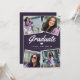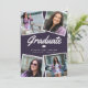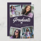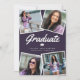 Convite para Festa de formatura de Colagem de Fotos Moderna de Lado Duplo. Design apresenta quatro imagens quadradas do formando, uma placa-mãe, o FORMANDO de texto em letra de tendência em um fundo roxo profundo que pode ser alterado para qualquer cor. No verso, você pode adicionar todos os detalhes de sua parte usando o modelo personalizável.