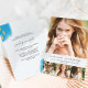 Este moderno e moderno convite para festa de formatura de quatro fotos apresenta belas cinzas azuis aqua e amarelas vibrantes em um fundo azul pastel. Este convite para festas de formando é uma forma perfeita de celebrar o seu formando.