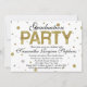 Dourada e divertida e festiva, confete, elegante e festa de formatura feminina para ela enquanto se move para a próxima fase da vida. Bolinhas brilhante branco brilhante e padrão dourado com impressão. Na moda e classe para uma divertida reunião formal de casa aberta ou diversão casual.