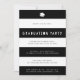 O convite à festa de formatura brilhante e festivo apresenta extensas faixas brancas e pretas com uma ilustração do boné de formando e "festa de formatura" na tipografia de recorte branco.