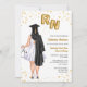 Enfermeira, Festa de formatura. Enfermeira, mulher curvada, Convidando para festas de formando, celebrando mulheres que acabaram de se formar na escola de enfermagem. Celebre a nova enfermeira registrada com este elegante convite para a formatura de enfermagem! Apresentando um retrato de pele clara mais uma mulher de tamanho longo, de cabelo preto. A formando de enfermagem está vestindo um vestido branco na moda, um roupão de graduação preto enrolado sobre o ombro e um boné de formatura preto correspondente. Ela segura balões em forma de folha de ouro com as letras RN numa mão e um estetoscópio na outra mão. Acentuado com o confete dourado, ele captura perfeitamente a alegria e o entusiasmo de sua grande conquista.