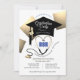 Saiba por planos de festas com estes convites para formatura de enfermeiras. Este design apresenta um texto personalizável, uma ilustração de boné de formatura preto com sotaques quadrados de impressão dourados falsos e um estetoscópio dourado e preto sobre fundo branco. O dorso tem um padrão estetoscópio em um fundo branco. As cores neste design estão em branco, preto, cinza, ouro e azul. Use o botão personalizar para atualizar as informações e, em seguida, selecione as opções impressão e ou design baixável. Design por Ms_Jade.