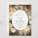 Lindos convites para festas de formatura com um elegante tom pastel neutro e neutro molhado de cor aquática quadro floral botânico em tons suaves de pêssego, laranja, pincel suave, amarelos e muitos tons de verde de sábio verde a verde brilhante e profundo. Seus detalhes personalizados são exibidos em um elevado layout tipográfico que coloca o convidado de honra em frente e no centro.