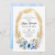 Folhas de palma secas, erva-pampas e flores azuis empoeiradas, convite à festa de formatura.