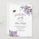 Cartão de modelo de convite para festa de formatura de floral elegante com ilustração de cor d'água com cor púrpura e verde. Há também uma ilustração de um boné de formatura. Você pode adicionar a foto do formando na parte traseira da placa. Excelente para segundo grau e formando universitário.